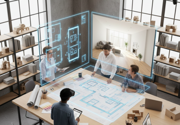 - Realistic 3D views showing materials, lighting, and furniture